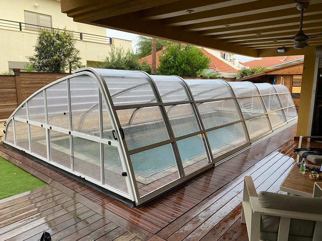 קירוי הבריכה מגן מפני רוחות, גשמים, לכלוך, אובך ומונע קרינת UV