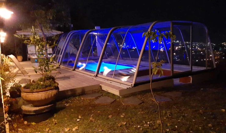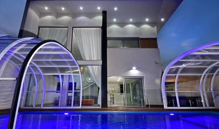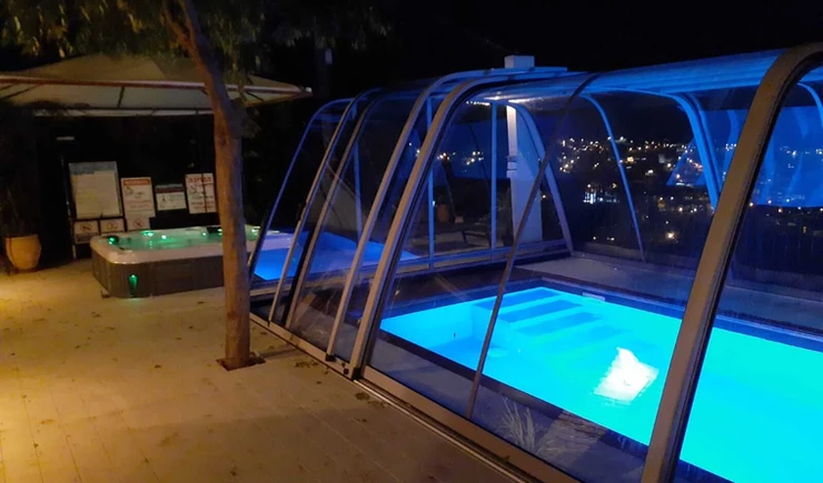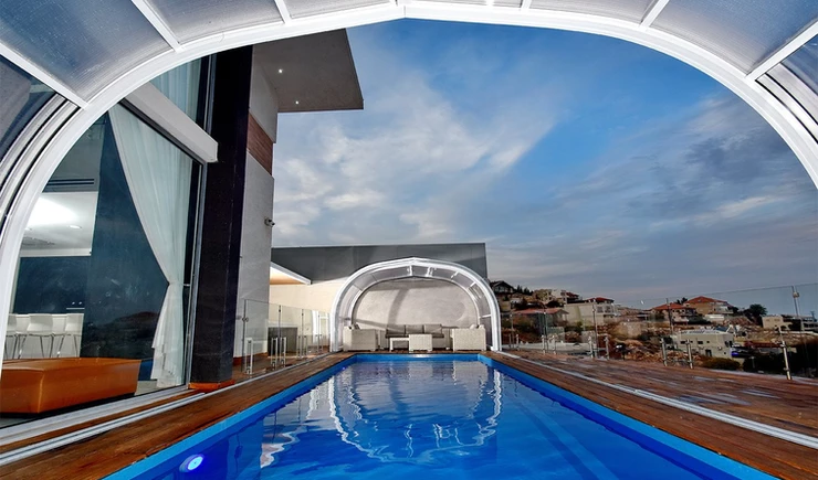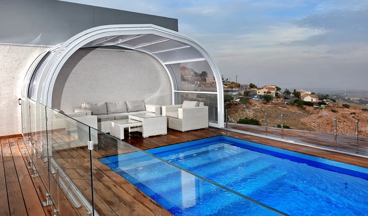 קירוי בינוני שומר על חום המים בבריכה ומגן מפני רוחות, גשמים, קור ולכלוך.