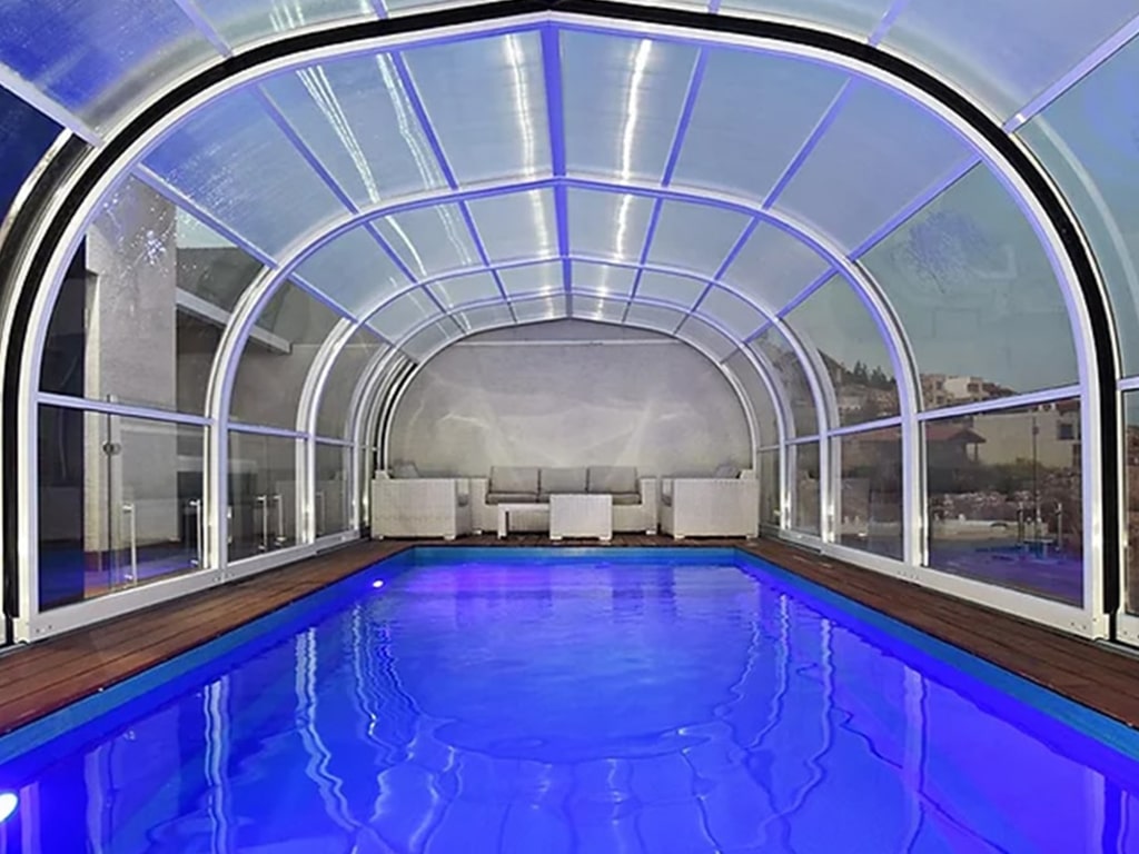 קירוי הבריכה מגן מפני רוחות, גשמים, לכלוך, אובך ומונע קרינת UV